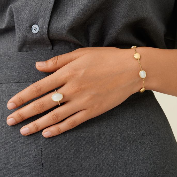 Marco Bicego kombiniert auf einzigartige Weise italienische Handwerkskunst mit zeitgemäßem Design und setzt dabei ausschließlich auf 18-karätiges Gold, das durch die traditionelle „Bulino“-Gravur von Hand veredelt wird. Diese Technik verleiht den Stücken ihre charakteristische, leicht matte Textur und unterstreicht ihre zeitlose Eleganz.